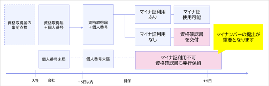 ※資格確認書の場合は、SCSK健保での資格登録(マイナンバー含む)から最短で5営業日後から使用可能。 マイナ保険証の場合は2営業日後から使用可能です。