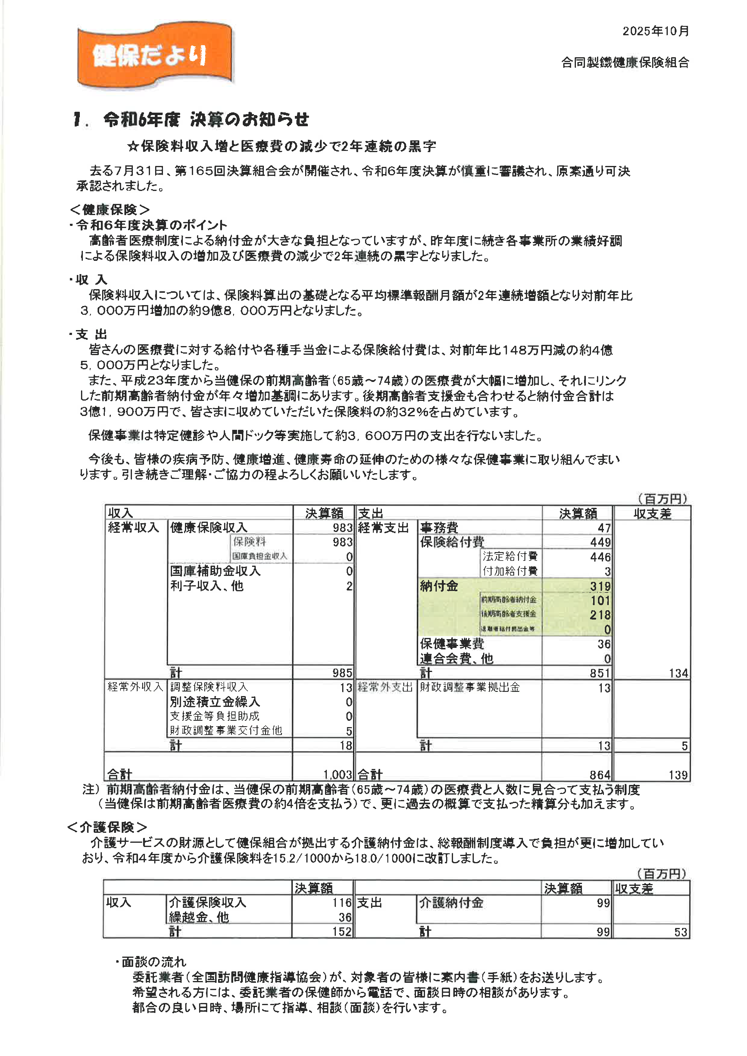 10月号は健保だよりとチラシ(メンタルヘルスカウンセリング・マイナ保険証の利用登録について・スポーツクラブ ルネサンス)を各事業所経由被保険者に配布しています。