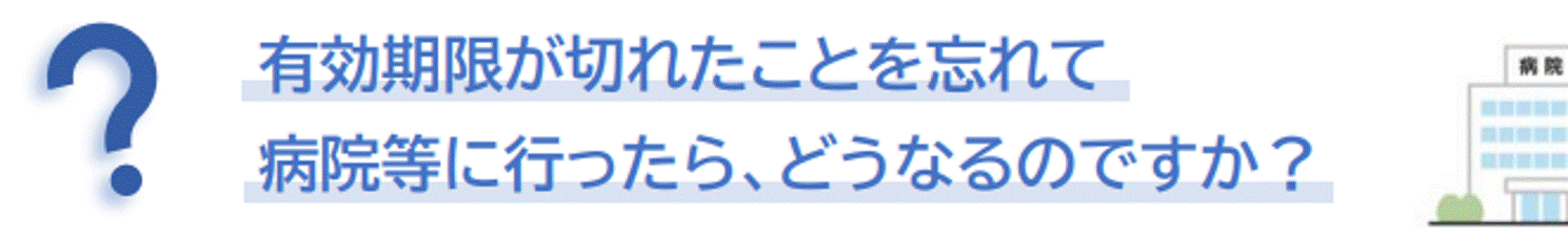 継続してマイナ保険証で受診できるよう、有効期限の確認方法や更新手続き等をご案内しますので、有効期限が近い方や有効期限が過ぎた方は速やかに更新手続き(無料)を行っていただくようお願いします。