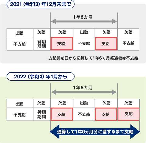 傷病手当金が支給されるのは、支給開始日から「通算して」1年6ヵ月です。同一の病気やケガに関して、支給期間中に途中で回復し復職するなど傷病手当金が支給されなかった期間がある場合、支給開始日から起算して1年6ヵ月分が支給されます。
