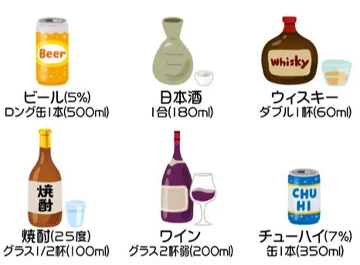 2024年に策定された「飲酒ガイドライン」では、まず純アルコール量(g)で飲酒量を把握し、お酒の飲み方を振り返ることをすすめています。