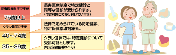 | ● | 上記のとおり各保険者(健康保険組合等)が健診の実施義務を負うことになったため、各市町村で実施されていた基本健康診査(住民健診)は、国民健康保険の加入者のみが受診することとなります。 |