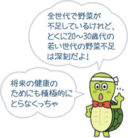 毎食、野菜をしっかりとっていますか? 野菜や果物には、からだの調子を整え、病気に対する抵抗力を高めるビタミンやミネラル、食物繊維などの栄養素が豊富に含まれています。
