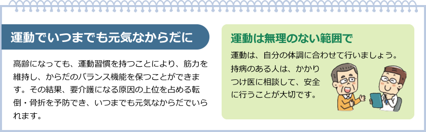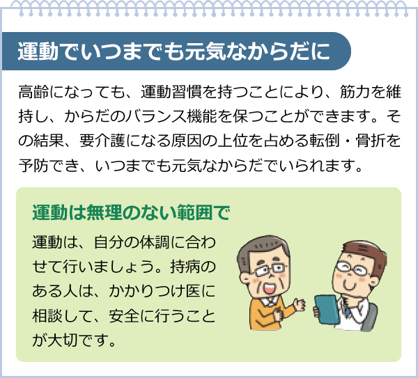 日頃から積極的にからだを動かすことが、健康長寿のカギです。