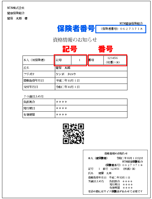 健康保険の「記号番号」「保険者番号」は、以下のいずれかで確認することができます。