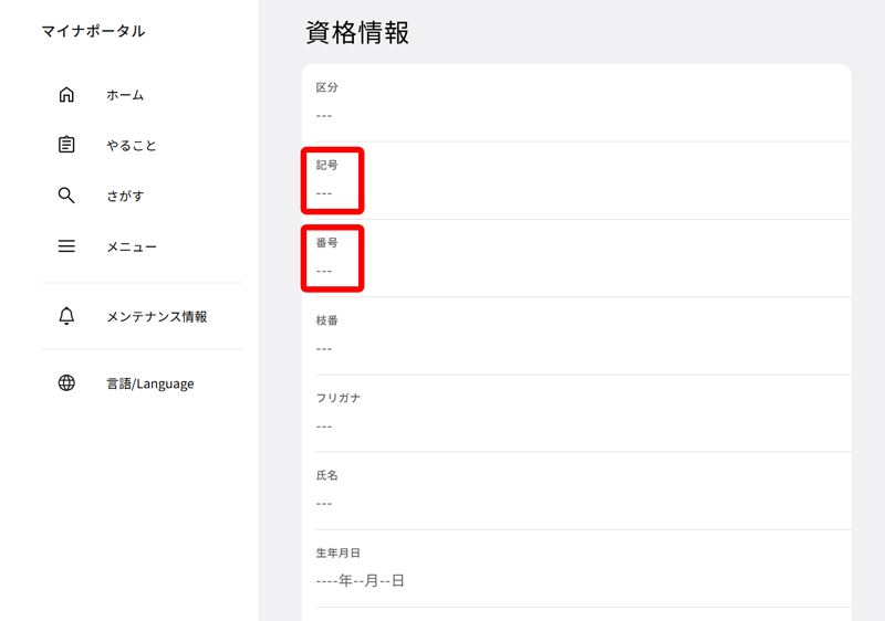 (3)マイナポータルの画面上の記号番号を確認してください。