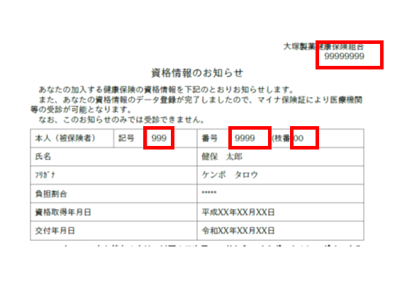 赤枠内をご確認ください。資格情報のお知らせの確認方法はこちら