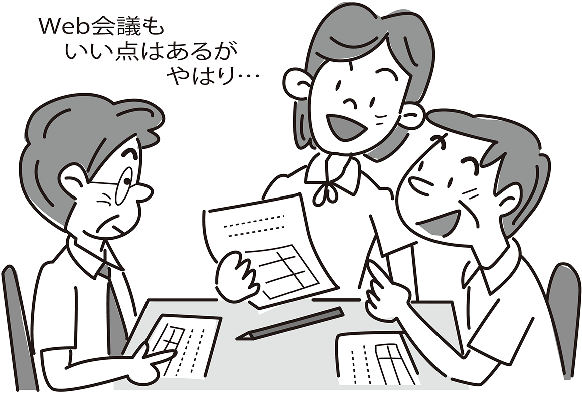 コロナ初年度はWEB会議に参加するのもおっかなびっくりでしたが、2年目は開催するのも抵抗がなくなってきました。WEB会議は遠隔地の人が参加しやすい、移動時間の節約、相手の顔がよく見えるという長所があります。