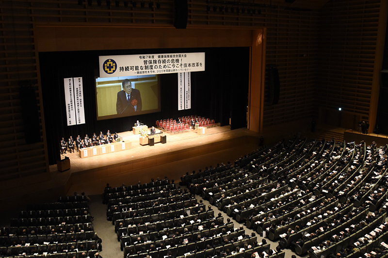 本大会は、健保組合関係者が一堂に会し、団結を強め、国民皆保険制度の維持に向けた主張を国政に訴える重要な場である。
