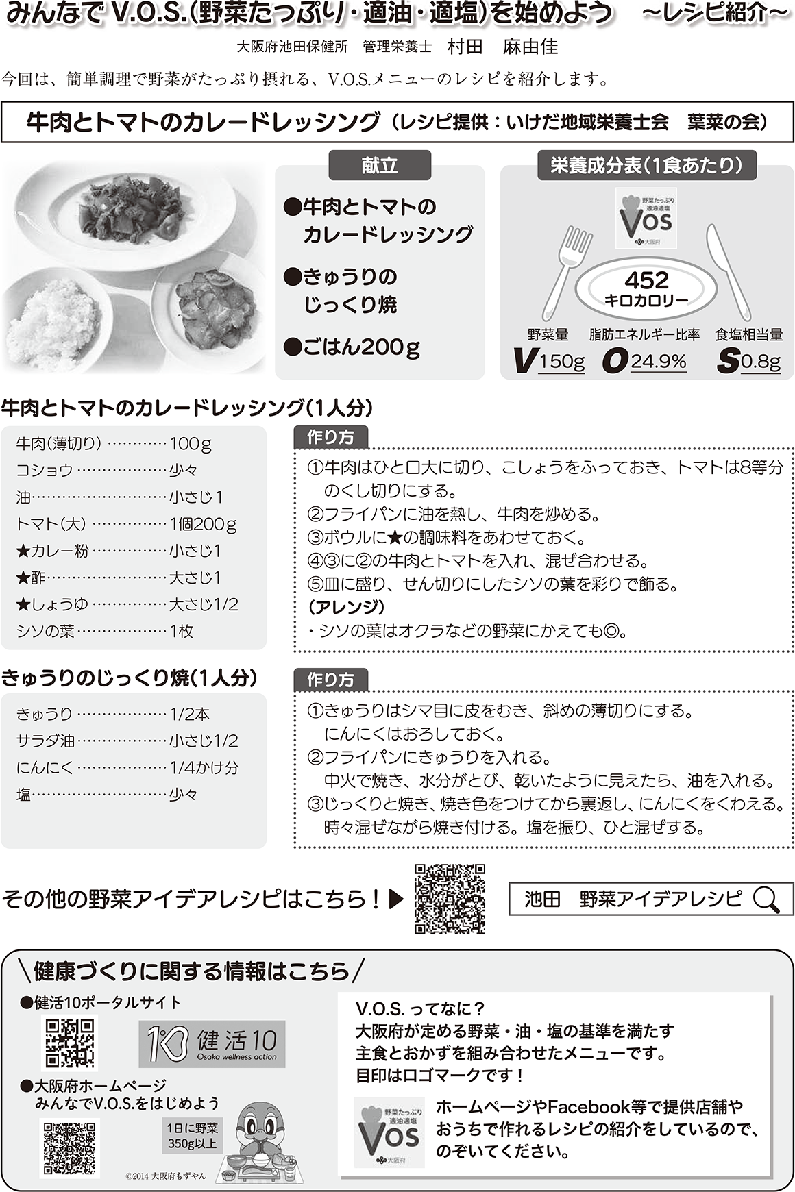 みんなでV.O.S.(野菜たっぷり・適油・適塩)を始めよう ~レシピ紹介~