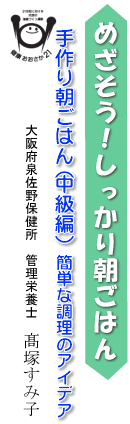 大阪府の食育情報サイト「おおさか食育通信」の栄養情報に掲載している、冊子「こんな朝ご飯食べたいなぁ」より、朝ごはんメニューを紹介します。