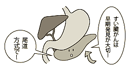 膵臓がんの早期診断プロジェクト(尾道方式)では、危険因子を2つ以上有する人に超音波検査を実施し、その結果、水のう胞などが検出されたら超音波内視鏡などを実施(その他詳細検査あり)。0期の発見に成功している。このプロジェクトの実施により、5年生存率7%が20%にあがる成果を得たそうだ。危険因子とは、喫煙、糖尿病、肥満、家族歴、年齢(60歳以上)などで、2つ以上該当する人は一度、超音波検査を受けたほうがいい。