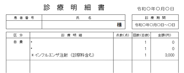 | (1) | 受診内容(インフルエンザ予防接種と明記) |